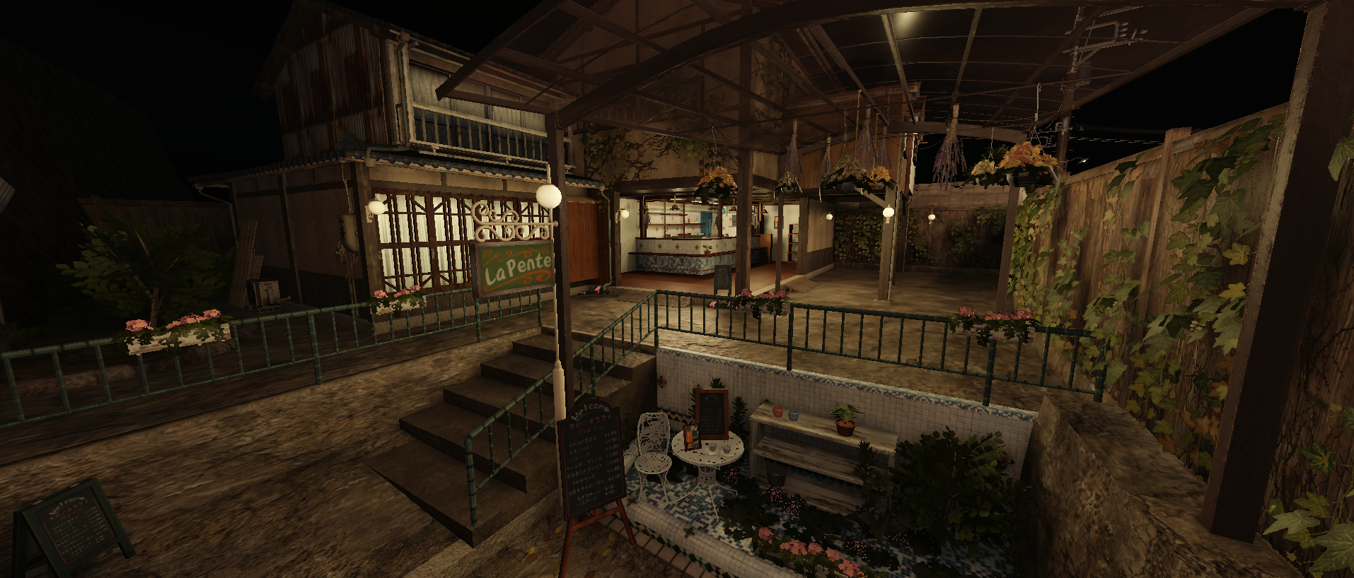 Experience the unique charm of a Japanese city, where every alley tells a story and bridges cross shimmering waterways. Stroll through narrow, iconic streets, admire traditional architecture, and explore two fully modeled Japanese restaurant interiors for a truly immersive experience.