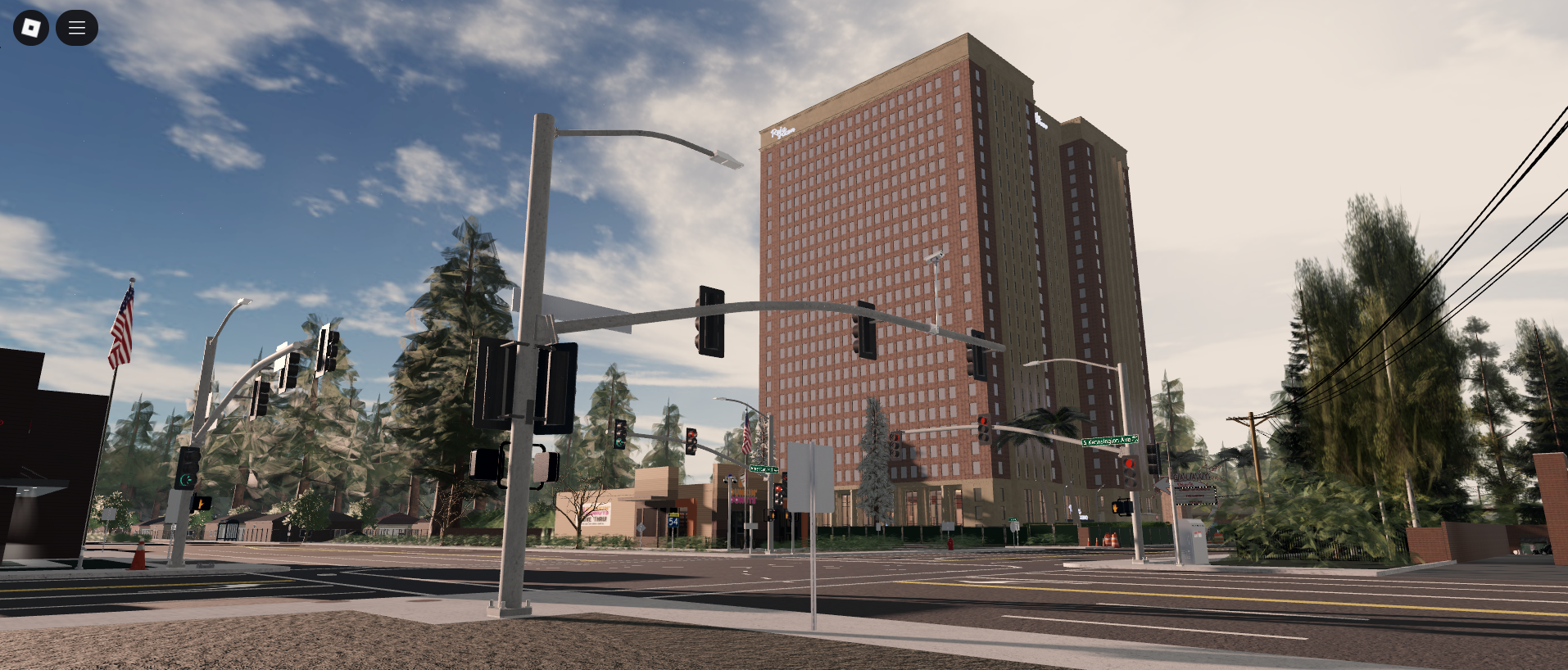 Step into a detailed American city featuring: