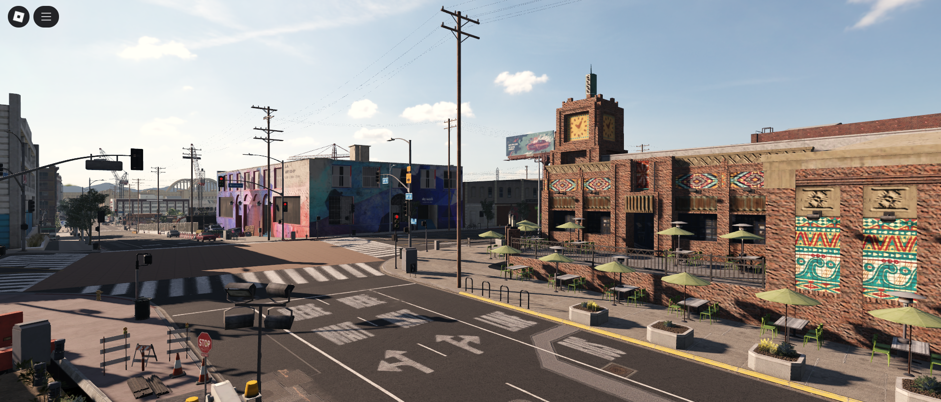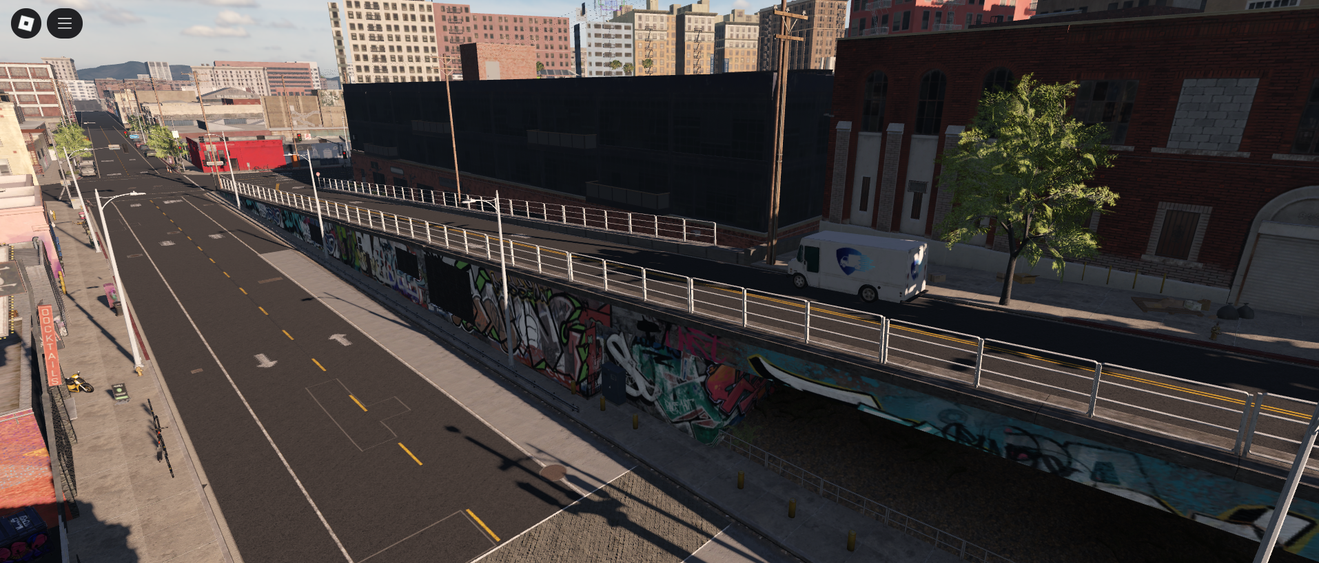 This map offers a detailed urban atmosphere with a downtown core, neighborhoods, street art, and realistic road designs.