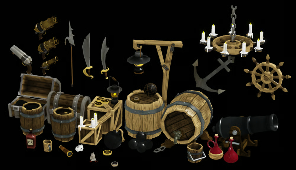 • +60 meshes and textures in this pirate asset pack with a cartoony and detailed feel to it. Fully game ready and optimized before hand to achieve the best possible experience for development and gameplay. Game-ready